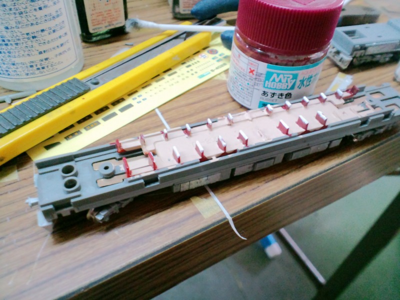 床下は軍艦色で塗装後例によって一部機器を銀色化してインバータ機器に墨入れを行いました。