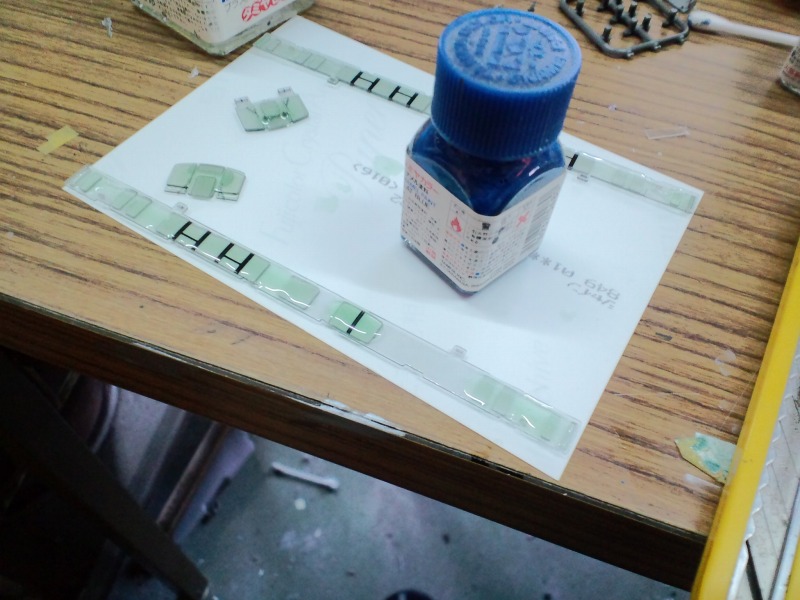 窓ガラスはクリヤグリーンを更に薄めたものを使って緑色にします。