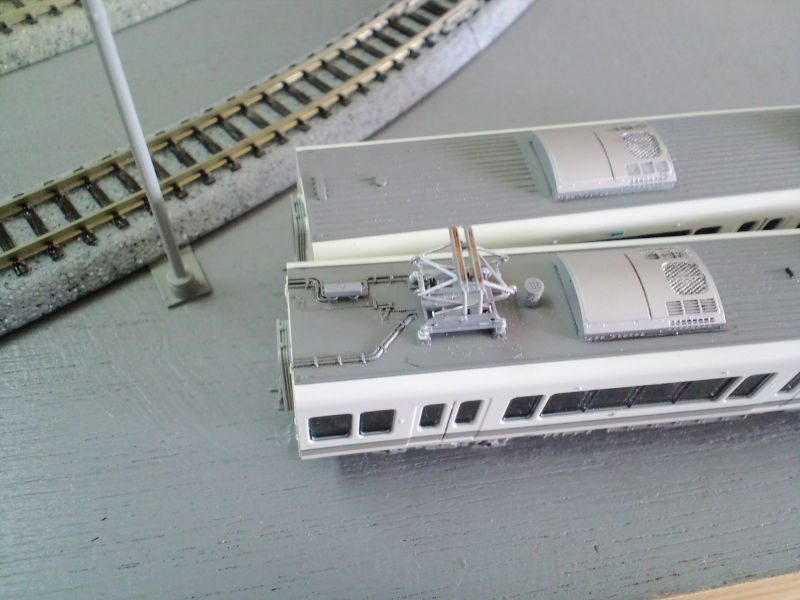 代わりにパンタ配管をメタリックグレイで塗装してみました。