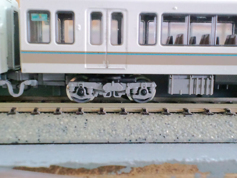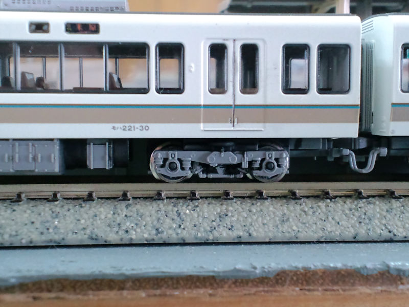 動力台車(下)も徹底的なブラックアウト化で付随台車と遜色ないようにしました。