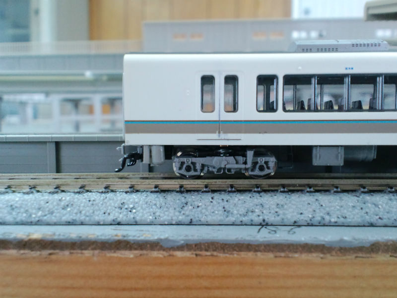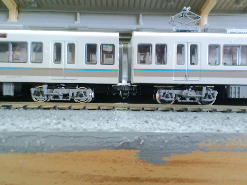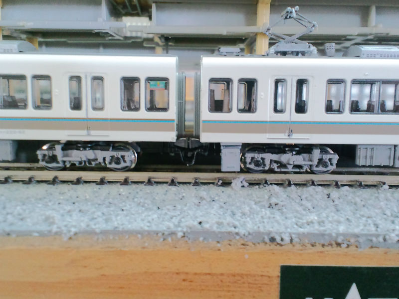 モハの車端機器、クハのタンクはいずれも曲線通過を見越して薄くスライスされてます。