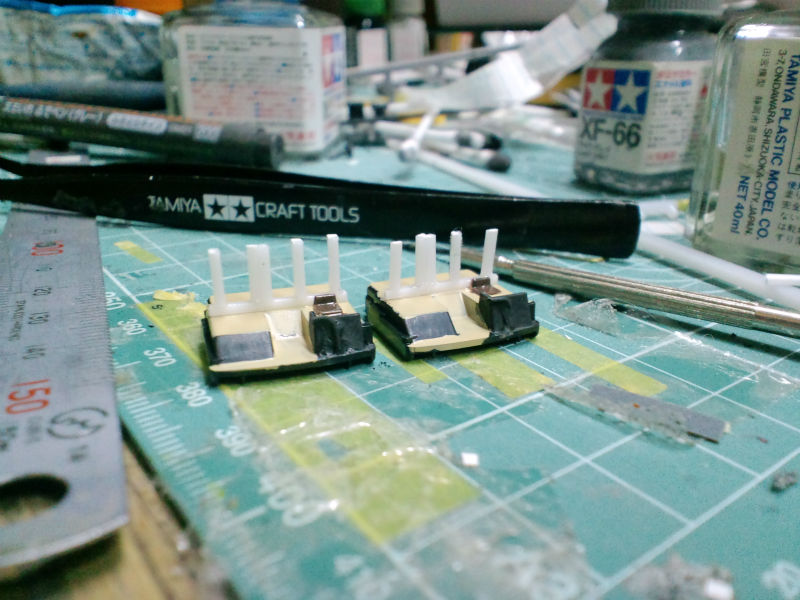 連結面のジャンパ線塗装はもう定着しましたが今回見ていると取り付け部のグレーが目立つのでまとめて真っ黒けに。