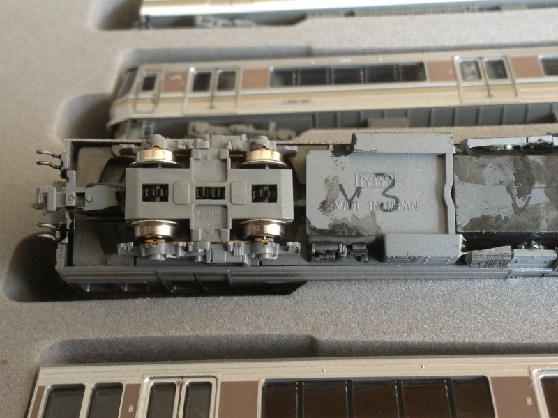 V3編成は連結も考慮しトラクションタイヤなしに車輪を交換。