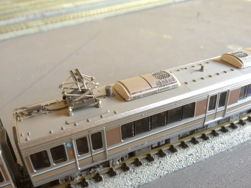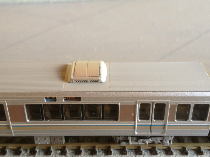 仕様を合わせるためクハ222とサハ223のクーラーも端っこを塗装。