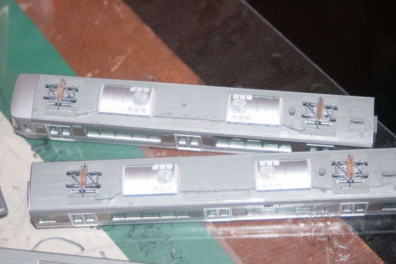 前面TNカプラーの側面にも同じ事を行っています。左は比較用の未加工のW26編成。