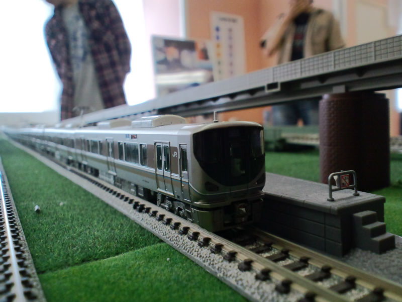 前面が黒くつぶれてしまいましたが(写真的な意味で)、今日学校のレイアウトでうちの225系がデビューしました。
