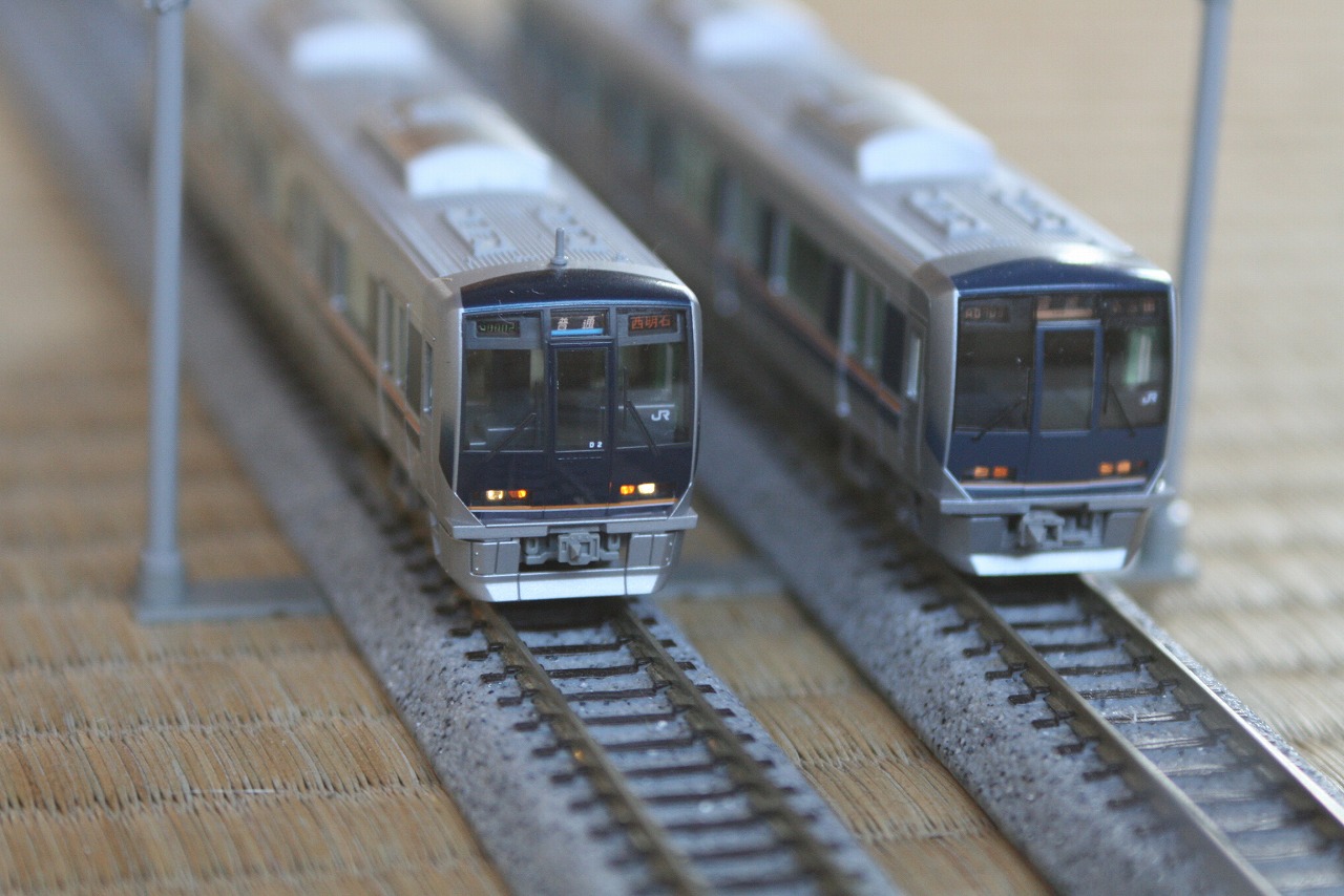 いきなりですがカトーの321系とトミックス321系の並びです。どっちがどっちかは、皆さん分かりますよね?
