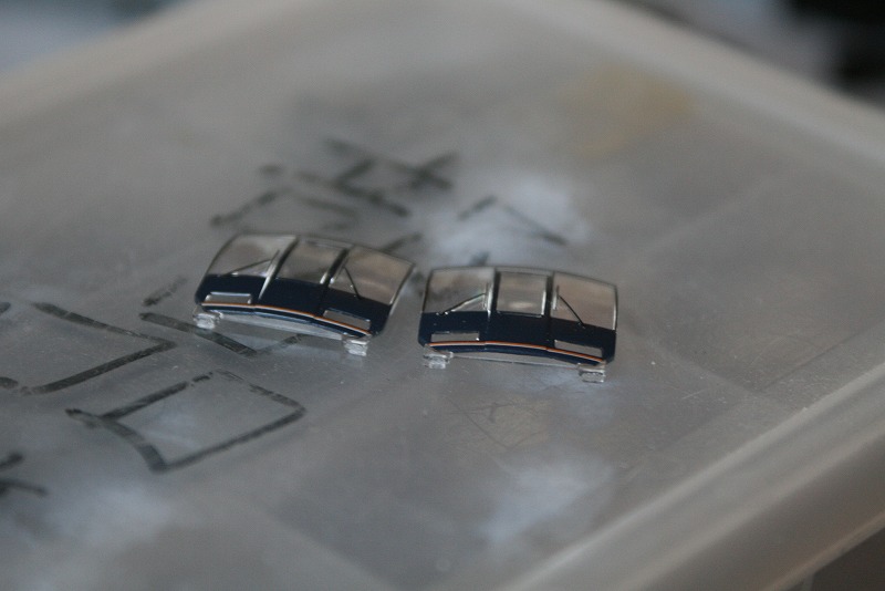 クリヤーを塗りました。クリヤーは紺色の部分すべてに塗って下さい。ライトの部分は避けても構いませんがクリヤーなのでライト部分についても気にしなくて良いと思います。(僕はそうしました。)