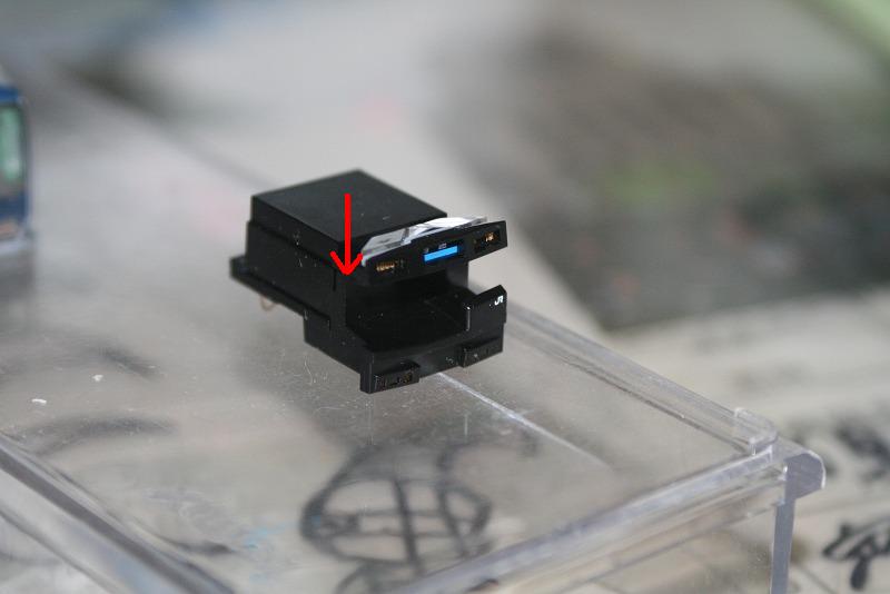 まず黒いパーツを写真のように押し込みます。