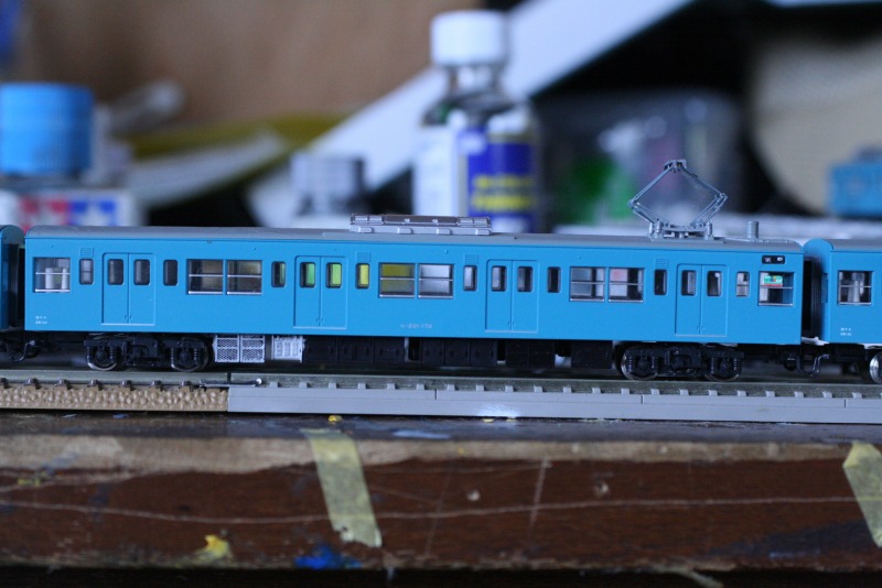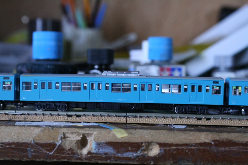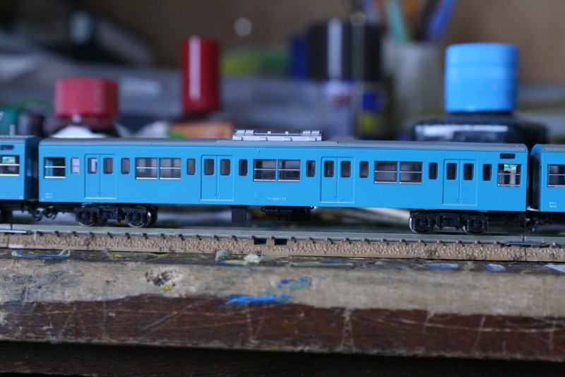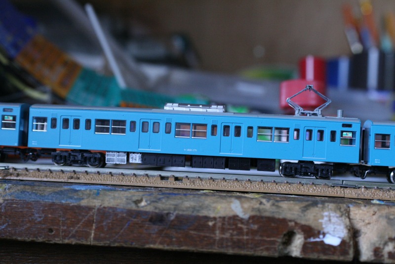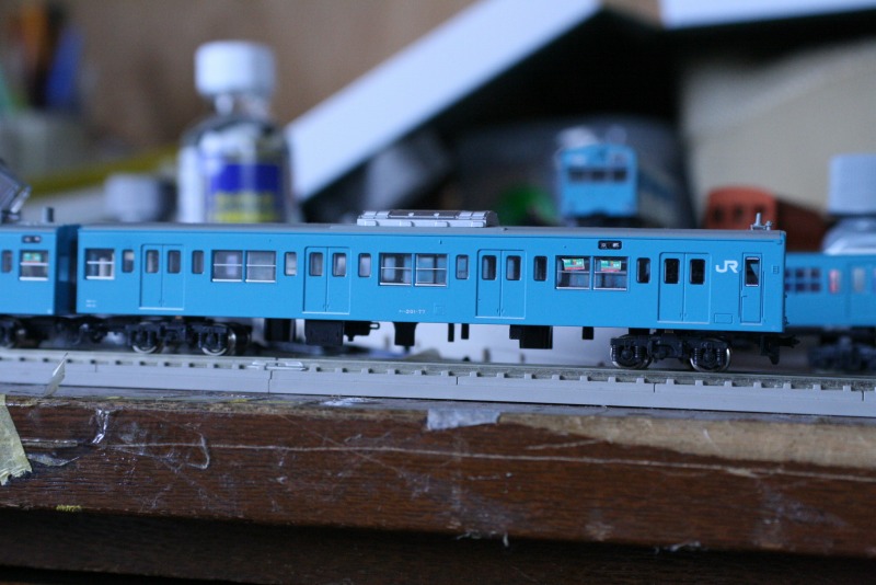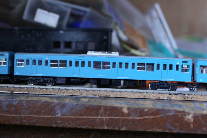モハ201-171。傾いてますね。すいません。ドアゴムにもまだ色入れしてないのでやらないと…。