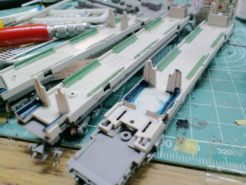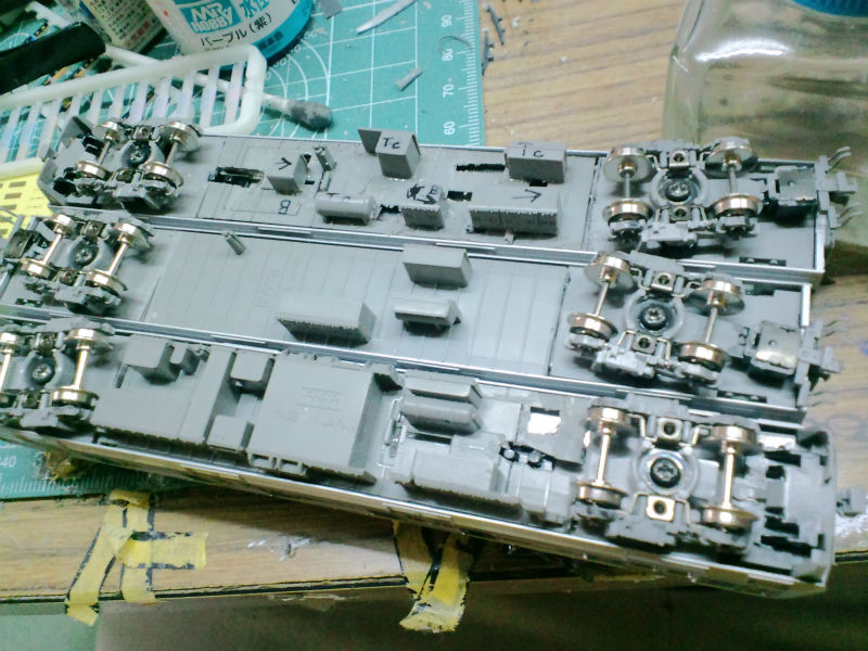 別にそのままでもいいかなとは思ったんですがクハ206-2000の床下は機器をほとんど取っ払って接着しなおしました。