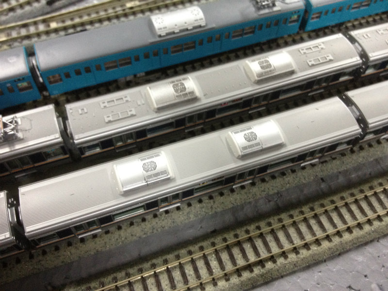 パンタグラフ周りは新標準工法で。クーラーは前回書いた通り全車東芝製WAU708に交換しています。