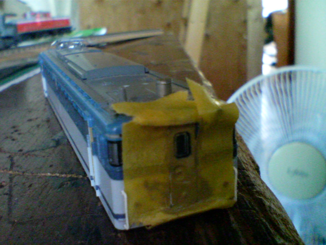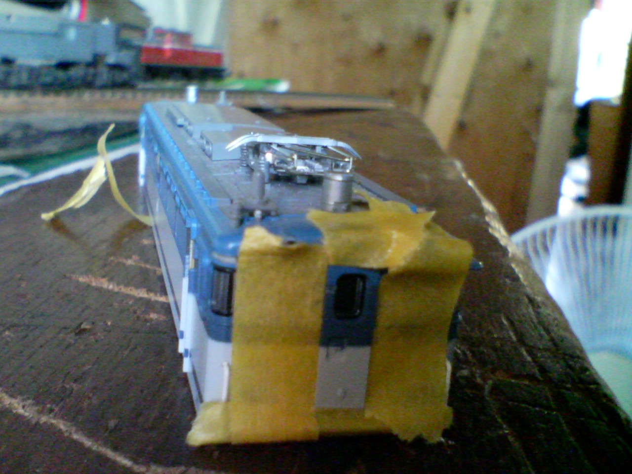 まず車体をばらしてマスキングテープを貫通扉の周りに貼っていきます。