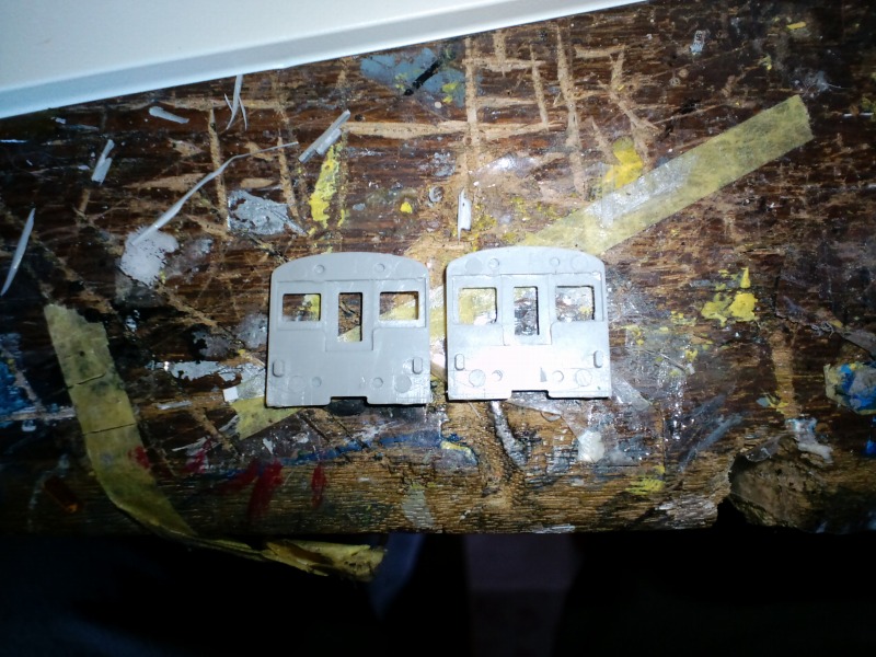 103系改造パーツセットから105系のパーツを選択し、加工したのが左側です。