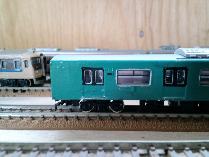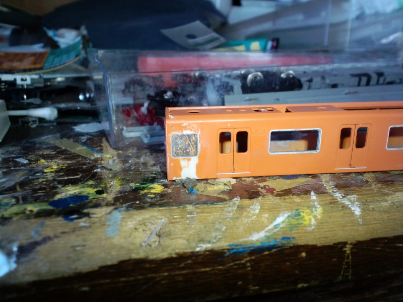 今回は瞬間接着剤で埋めました。クモハ103は方向幕があるので注意が必要です。