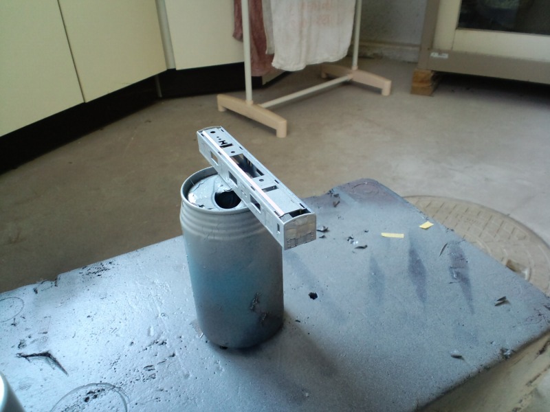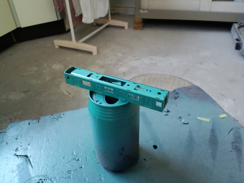 黒が終わったから次はエメラルドグリーン!といきたいところでしたが、「黒の上に塗ると色調が暗くなる」と聞いたことがあるのでグレーを一吹き。