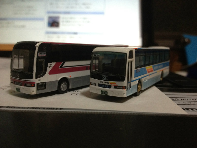 こちらはバスコレ。大阪では良く見かける阪急バス(高速車)と大阪空港交通のエアポートリムジン。
