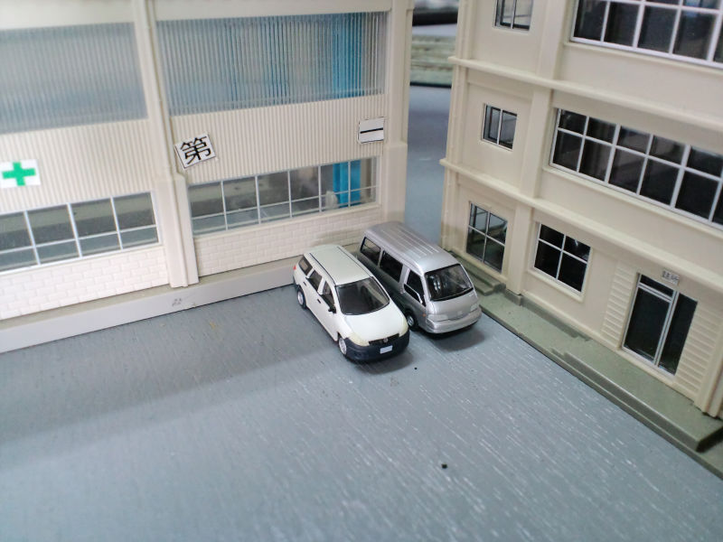 駐車場。ここを車で埋めてこそリアルになるんじゃないかと思います。