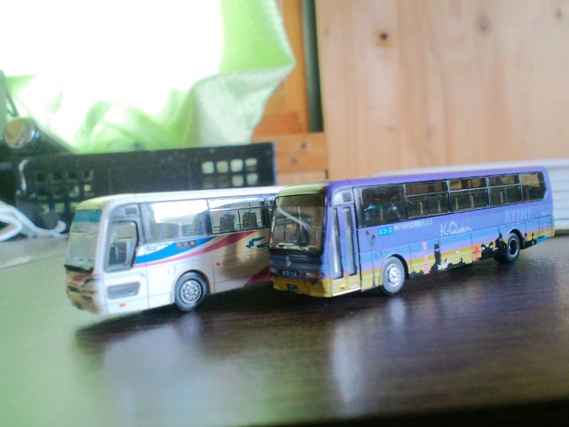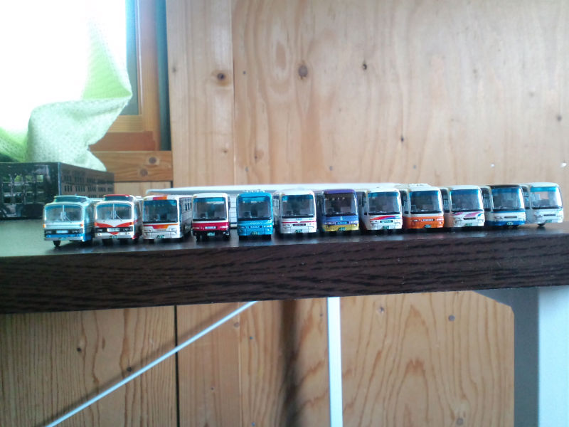 西日本JRバス、帝産観光(まだ時々見かける)、北海道中央バス(修学旅行で乗りました)、JRバス関東(大阪に来るのは2階建てばかりですが…)、九州産交バス(九州車のお供に使える?)、神姫バスK-Queen(まぁ塗装がきれいですし・・・)です。