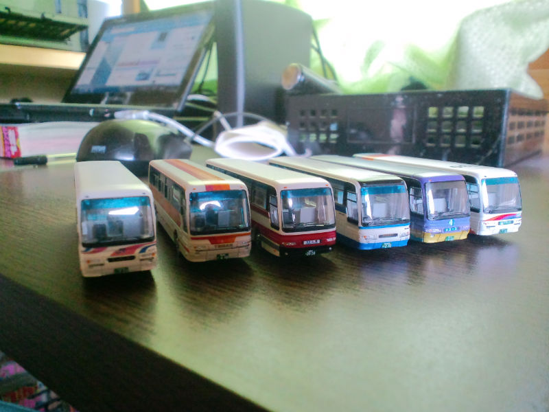 この6台のバスのうち何か欲しいものがあった方は神姫バス一般車とのトレードまたは400円程度でお譲りしますよ。