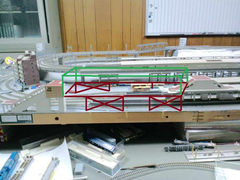 ざっと外形だけ書いてみるとこんな感じ。2階建ての少し大きめな橋上駅舎の予定です。