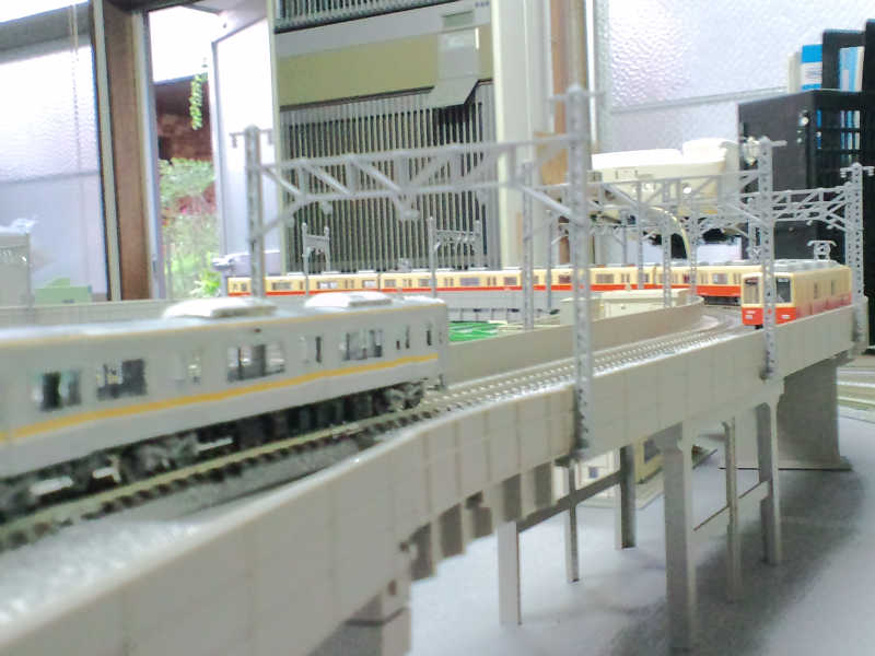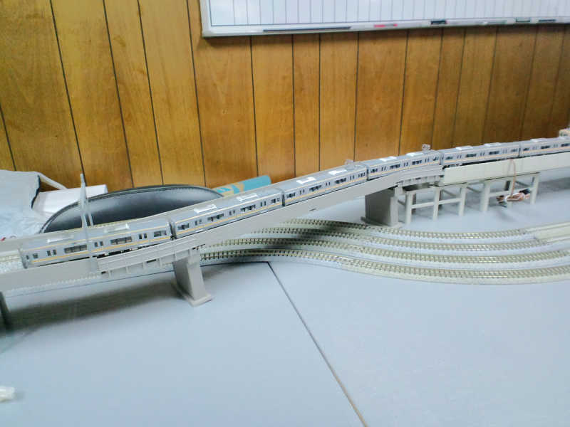 今は複線レールでつないでいますがここは複線トラス(青)で変化をつける予定です。