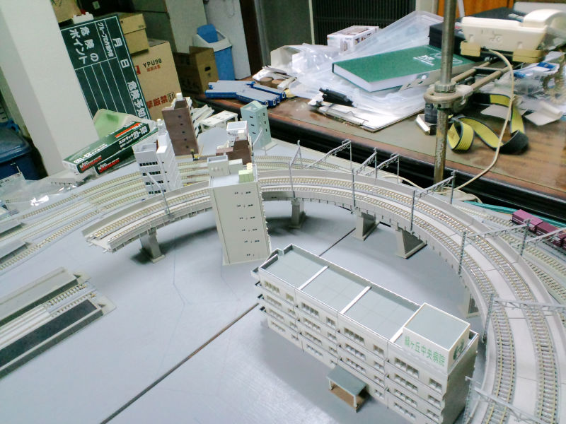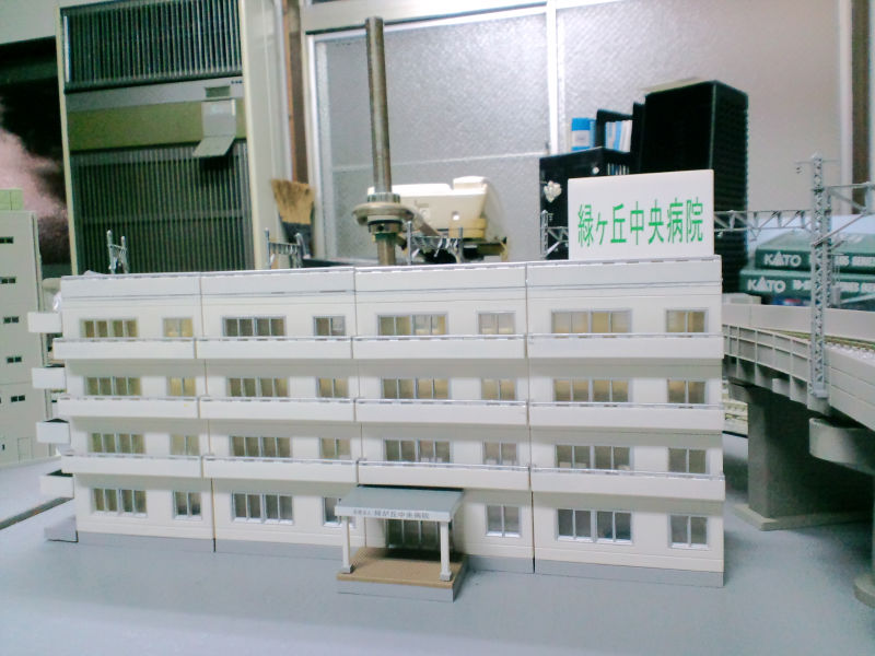 年明けにやってきた建コレの病院(鉄筋)。工場にどいてもらってこの位置に建てました。
