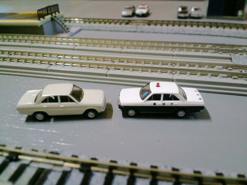 セドリック。昔TOMIXからも出てたタイプです。アイボリーとパトカー仕様です。