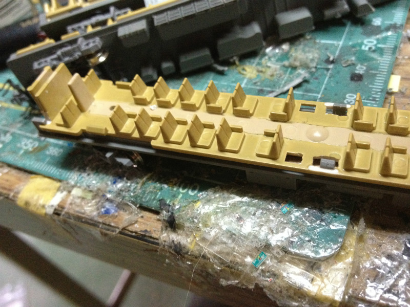単純に継ぐと床板を止めるつめが合わないので当たる場所を削ったり穴を開けなおしたりしています。