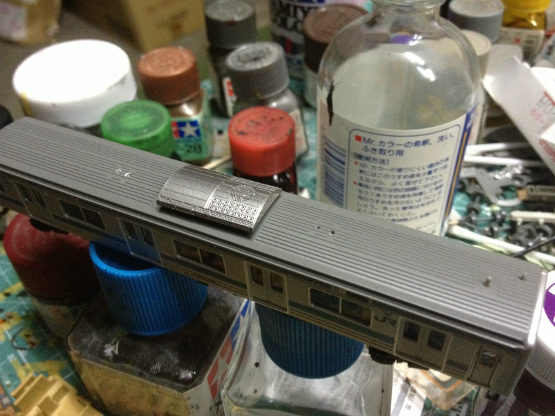 実車のベンチレータ撤去跡はかなりきれいに整えられているようですが・・・模型はちょっと跡が見えてしまいますねこれは・・・。