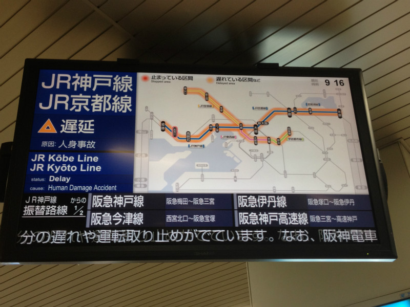 帰りは帰りで高槻にて信号トラブルが発生。神戸線も大阪方面の外側線がストップしてました。