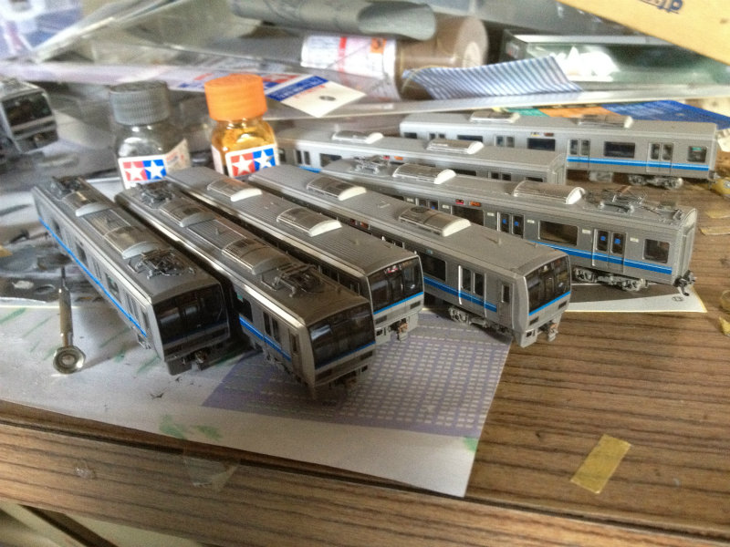 後は配管塗装と前面床下周りの機器取り付けのみとなった207系旧カラー。